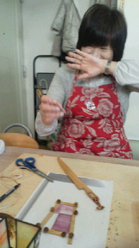 後輩たちが体験でキャンドルホルダーを制作しているお隣で