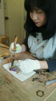 先週、ガラスカット終了、今日はルーターで削って
