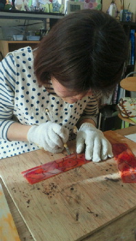 まずはクリアガラスを使って一通りガラスカットの練習。