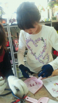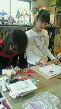 りほちゃん、ガラス切るのも怖がらず、楽しそう。