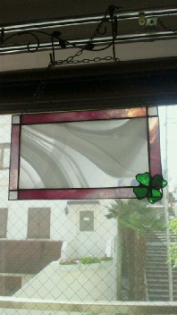 ピンクの枠にカトちゃんの大好きなクローバーをつけて