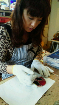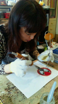 M永さん、ルーターでガラスを削って
