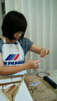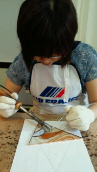 ガラスを枠に合わせてテープ巻、そしてハンダ付けです。