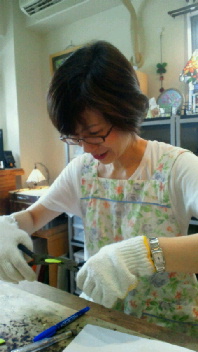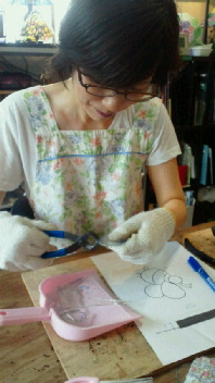 投稿日: 投稿者: eclatstdg生徒さんの制作風景(おーちゃん) 久しぶりにおーちゃんが来られました。「Beeちゃんのオーナメント」作ります。 まずはガラス切りから。 パーツが細かくて大変です!! 次回、テープ巻いてハンダ付けしましょう^^
