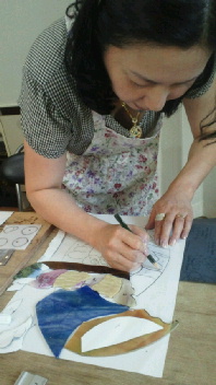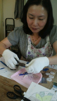 F川さん、「フクロウのパネル」のガラスカットの続きです。