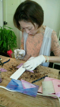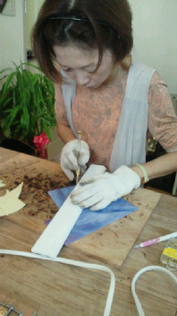 投稿日: 投稿者: eclatstdg生徒さんの制作風景(Y.Sさん) Y.Sさん、今日から「時計」を作ります! ガラスを選んで切っていきます。物差しを使って直線切りです。 固くて切りにくいガラスもありましたが、全部切れました!明るくてY.Sさんらしいお色です^^