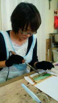投稿日: 投稿者: eclatstdg生徒さんの制作風景(K.Yさん) K.Yさん、「テラリウム」いよいよ最後の図案のハンダ付けです! 一瞬、カメラポーズをとってくださったのに シャッターチャンスを逃してしまった>< 真面目にハンダ付け。 次回、組み立てて完成できるかな。