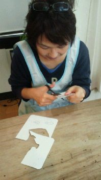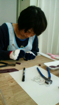 投稿日: 投稿者: eclatstdg生徒さんの制作風景(K.Yさん) K.Yさん、今日からクリスマスに向けて サンタのフットランプを作ります^^ デザイン画の型紙作りです。 ガラスを選んで切っていきますが。。 パーツが細かいですね>< どんな、フットランプができるでしょうか^^