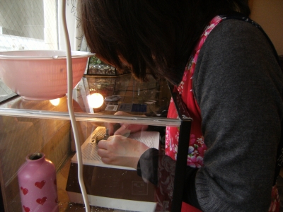 ひろりん、午後からは「ルーター」でガラスを整えていきます。