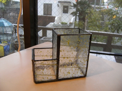 ステンドグラスでペン立てを作ります。