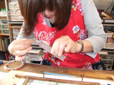 ガラスをカットしていきます。