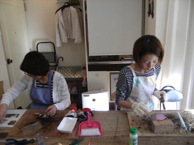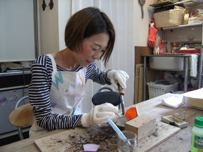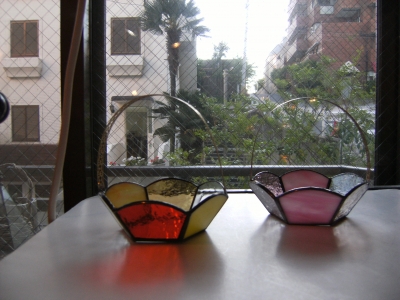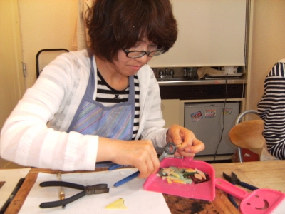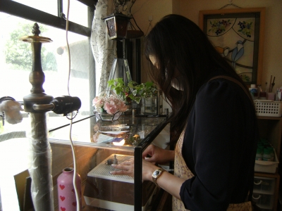 Ysさん、「テラリウム」の底の部分。ハンダ付けです。