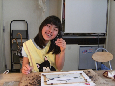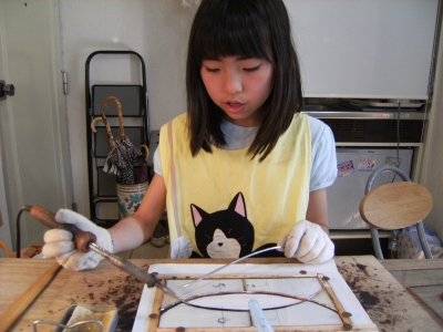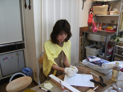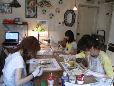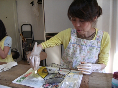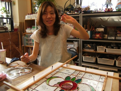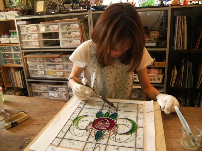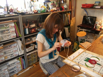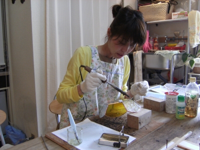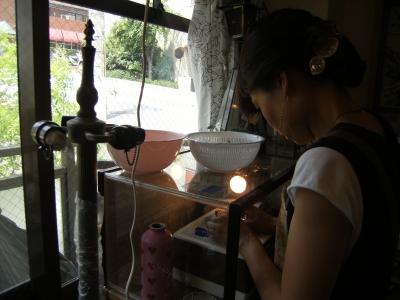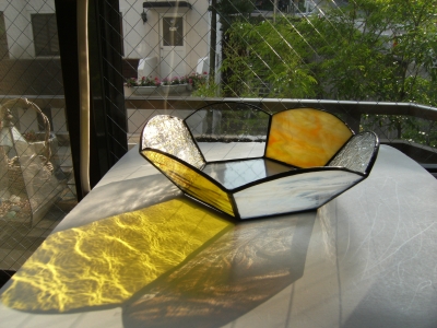 ポインセチアの花芯にはイリデッセントの入ったピーチのナゲット