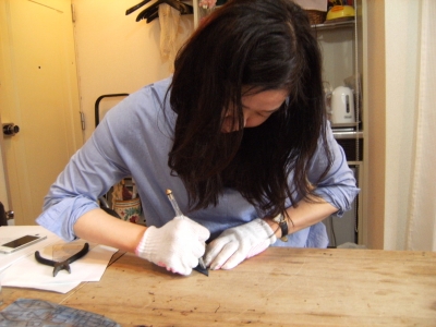 型紙を作って、早速ガラス切りです。