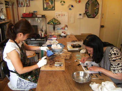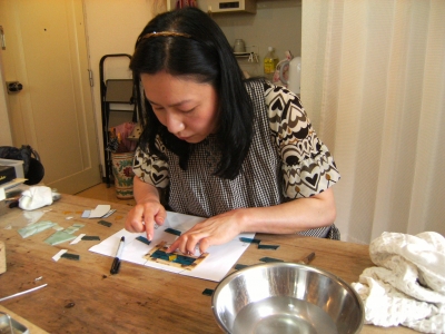 真ん中の部分だけガラスを変えてダイヤ柄を入れます。