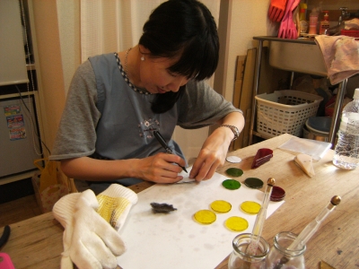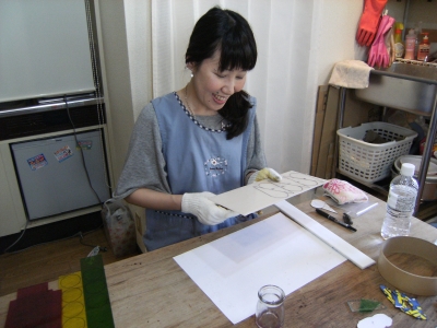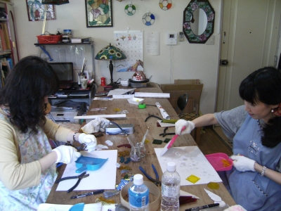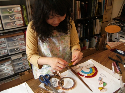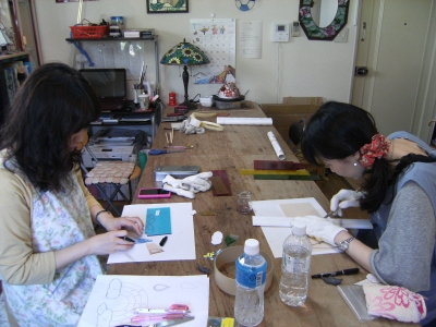 K本さんは壁かけ時計の制作、ガラス切っていきましょう。
