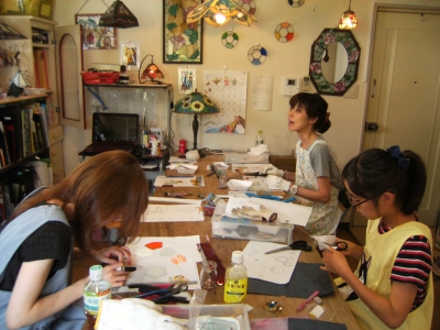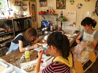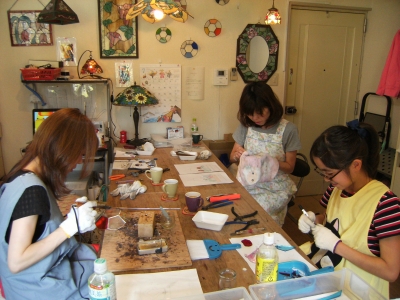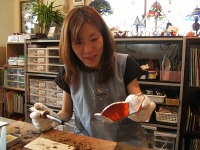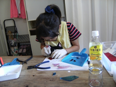テルちゃんはテラリウムの制作続き。ガラスカットからです。