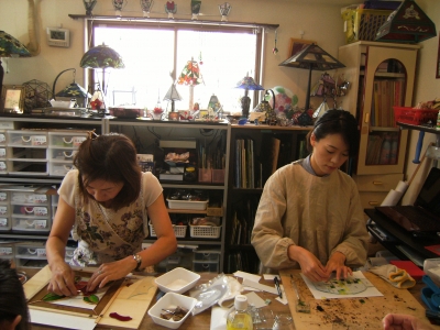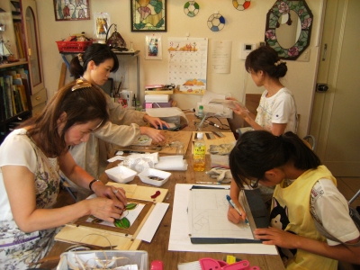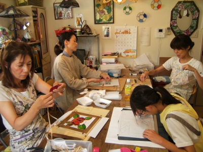 Yuこちゃんは薔薇のミニパネルの制作です。