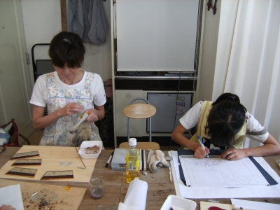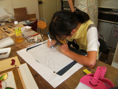 N.Mさんはお父さんにプレゼントするペンスタンドの制作です。