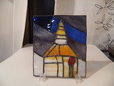 シックな落ち着いた色合いに赤いガラスが効いてますね。