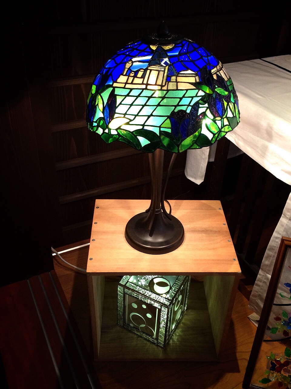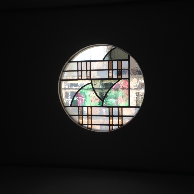 階段の外から見える丸窓にパネルをはめました。