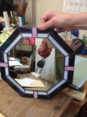 周りは濃いめのパープル、ポイントにピンクのガラスを使われました。