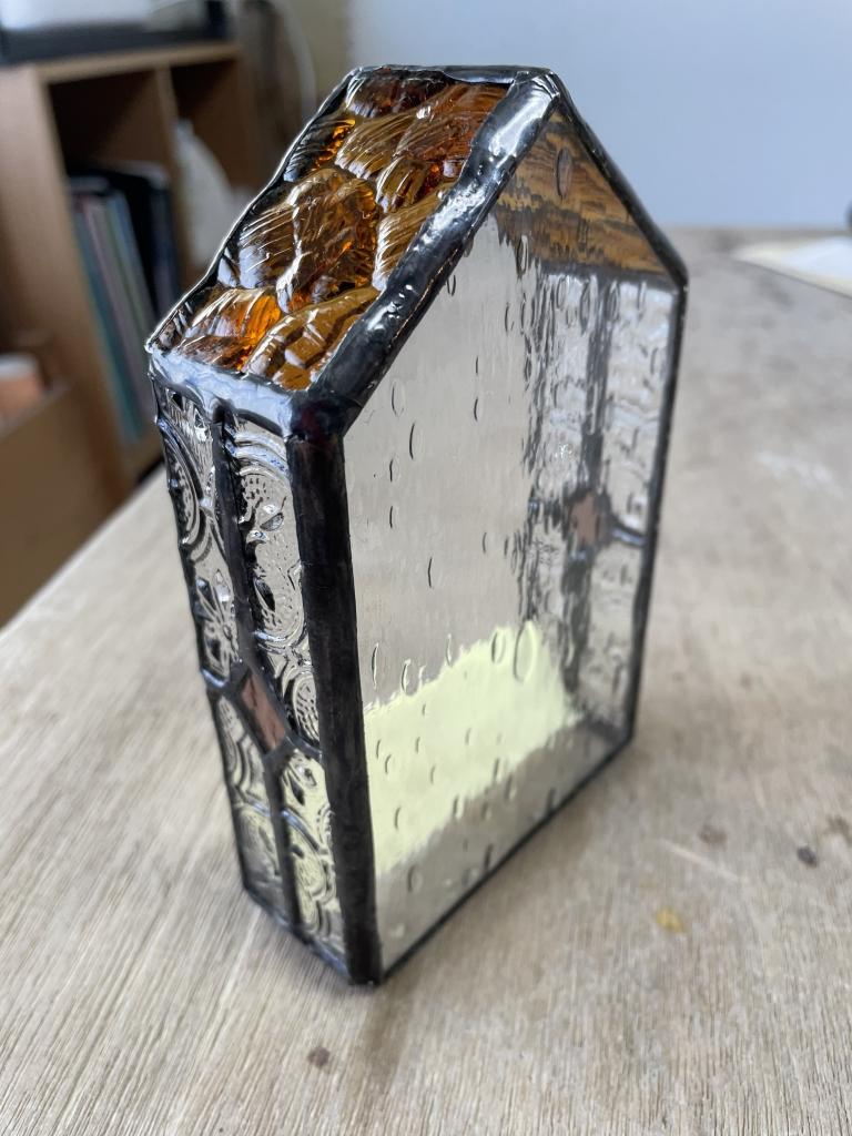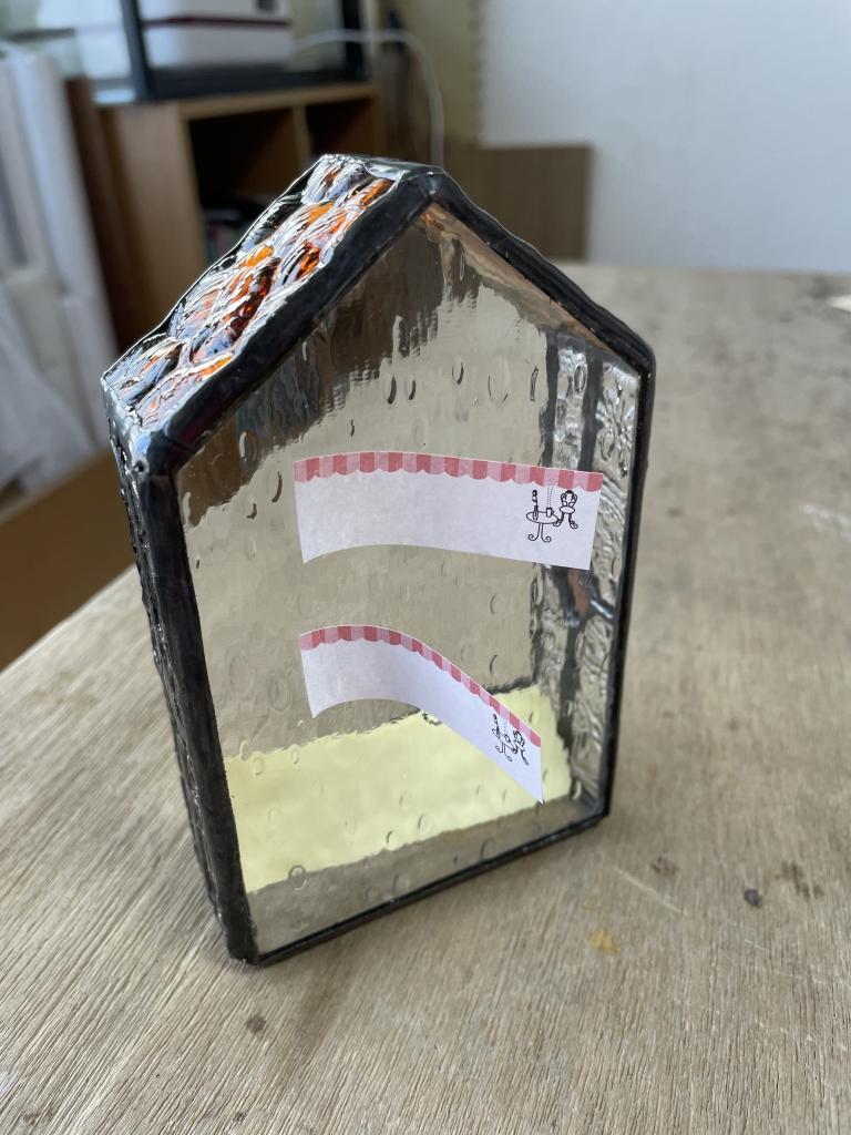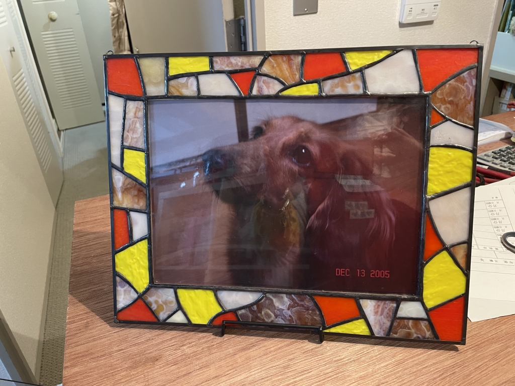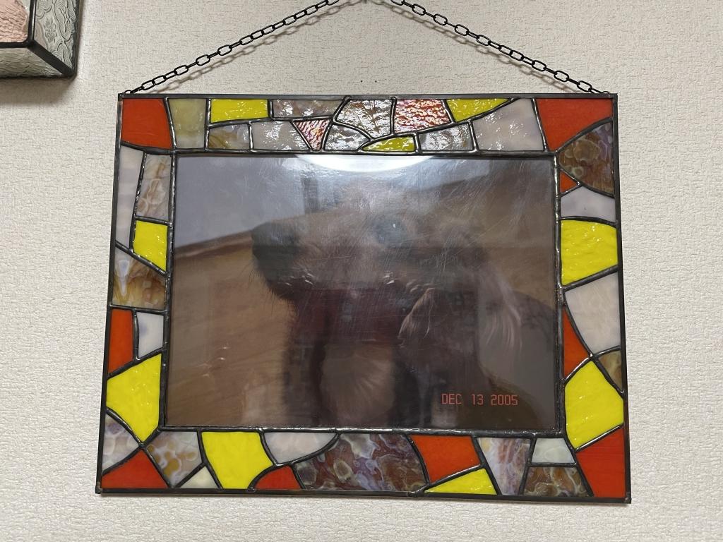 オレンジとイエローのガラスが明るくて写真のわんちゃんも喜んでいるかな^^