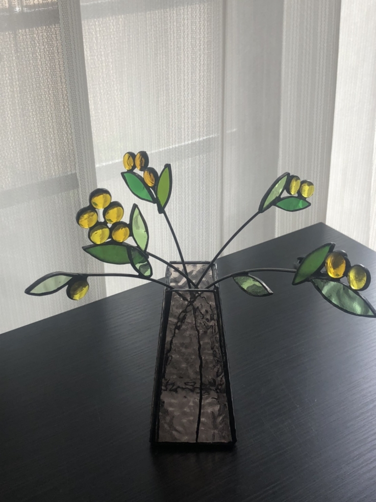 O.Mさんのフラワーベースとミモザのピックが完成しました