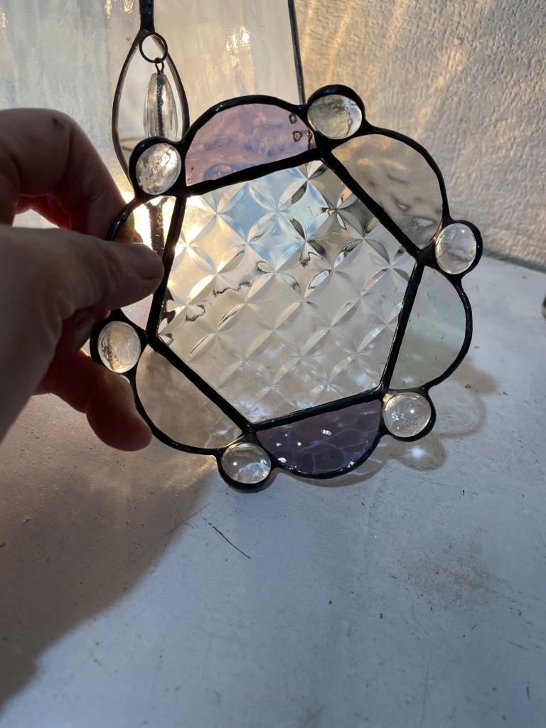 イングリッシュマッフルの薄い紫とピンクの透明系のガラスを