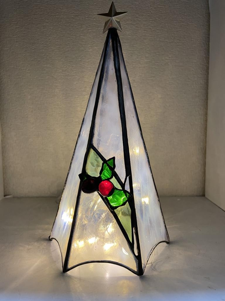 間にグリーンのガラスをいれ、柊をのせました!