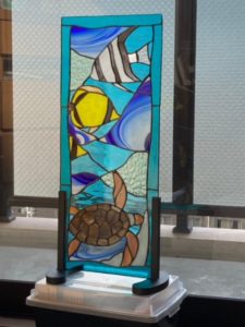 投稿日: 生徒様の作品:パネル H.aさんのお魚と亀さんのパネルが完成しました! 色使いがとても綺麗です。 海の感じがガラスの濃淡と表情でよく出ていてリーミーのガラスも場所取り素晴らしい。 お魚たちも可愛いです!! H.yさんの鏡とリボンのパネル完成です。 鏡はLivちゃん、鏡の間にブラックのガラスを挟んで立体感あるお名前が素敵です。リボンはキティちゃんのリボン、ガラスカットちょっと難しかったですね お友達のお子様のお名前、プレゼントされるとのこと、素敵ですねー