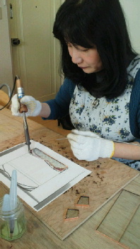 組み立てて黒く染めて、磨きます。