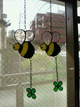 2匹並んでクローバーをつけたハチが可愛いです^^