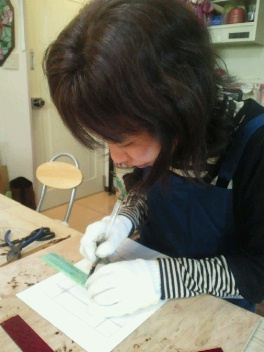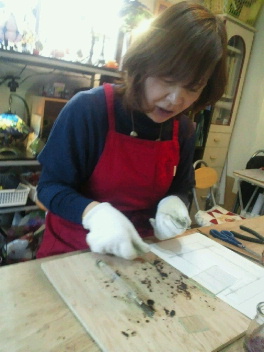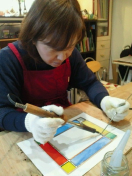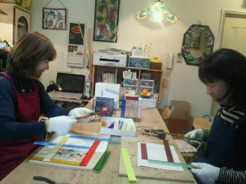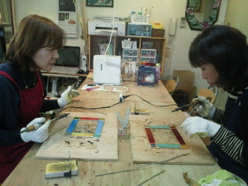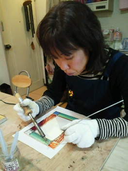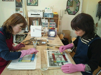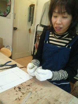 ガラスカットの体験です。さくさくとプライヤーも使い「面白い~」^^