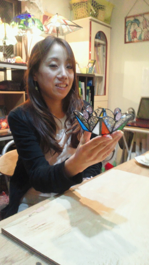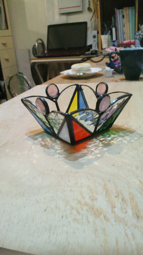 キャンドルホルダー(小物入れ)を制作。ガラス選びにとても迷われましたがカラフルな